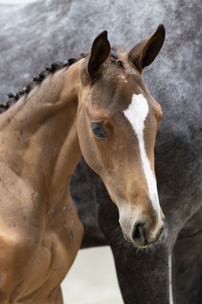 This mother’s sire is the legendary Cornet Obolensky. Never before has a stallion produced so many winners at major championships and big Grands Prix, with offspring like Clooney, Cornet d'Armour, Corbinian, Coree, Cornado NRW and Comme Il Faut. Here he was combined with the dam Regina: Daughter of Papillon Rouge out of 1.60m-mare Degina (Michel Robert)